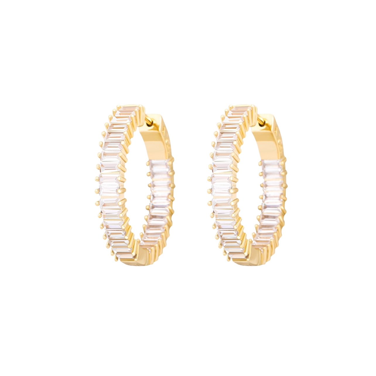 Gold: 18K Plated Plating: 5x PVD Stones: CZ (Cubic Zirconia) Width: 10mm Length: 27mm Weight: 4.1g
