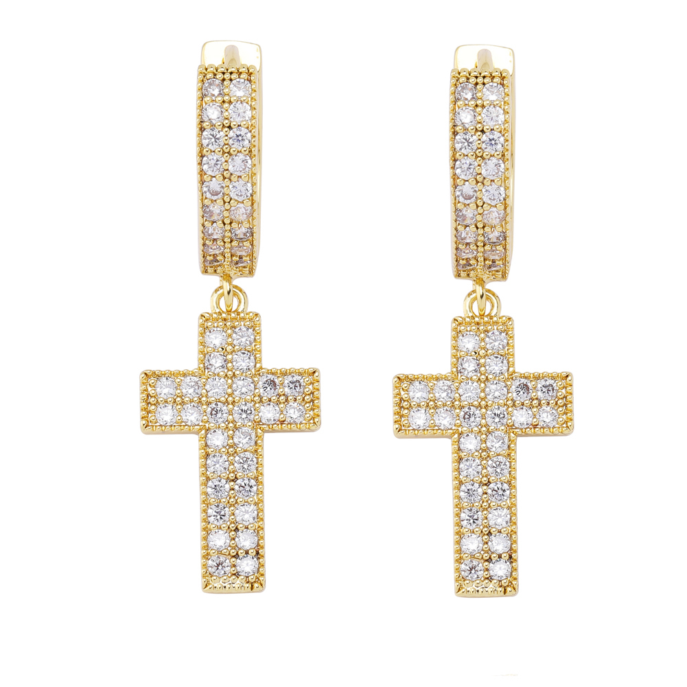 Gold: 18K Plated Plating: 5x PVD Stones: CZ (Cubic Zirconia) Width: 22mm Length: 34mm Weight: 7.4g
